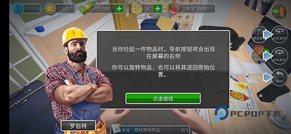 8、当你捡起一件物品时,导航按纽将会出现在屏幕的右侧,你可以旋转物品,也可以将其送回原始位置。