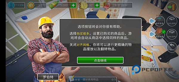 9、选项按钮将会对你很有帮助。选择购买很多,设置已购买的商品后,游戏将会自动从商店中选择同样的商品。关闭对齐网格,你将可以进行更精确的物品摆放以及翻转物品。