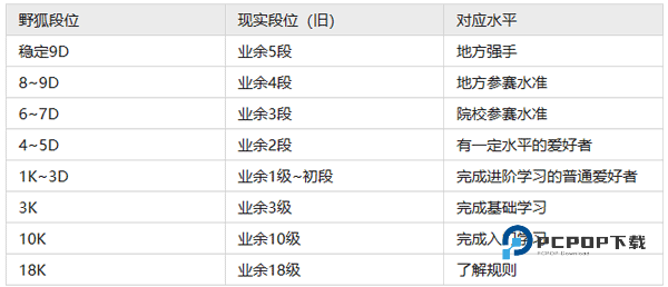 3、按以前的标准,4段以上的野狐段位/2=现实段位。野狐9段相当于现实中平均水平的业5;8段相当于标准的业4;7段相当于较强的业3……以此类推,4段相当于标准的业2。
