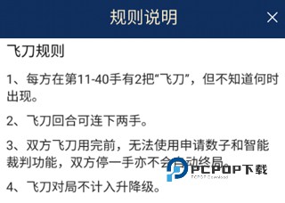 3、双方飞刀用完前,无法使用申请数子和智能裁判功能,双方停一手亦不会自动终局。