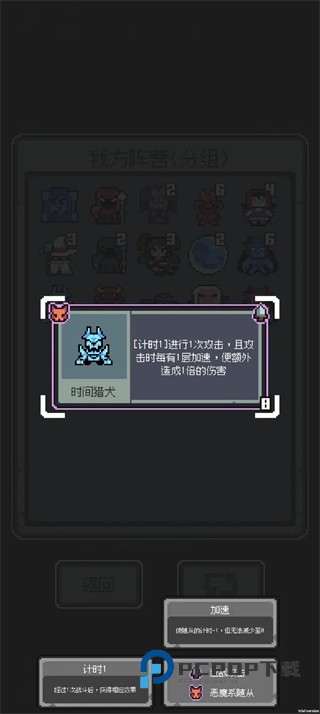 这个神器可谓是加速流派的核心了,80%的概率在人数堆积下也是极为可观,基本上前期拿到它就可以准备起飞了,配合一些「计时」短的怪物攻击力直接叠到起飞,就算是「计时」长的怪物比如说蓝魔鬼也是可以辅佐其它神器来达到极速启动的目的。