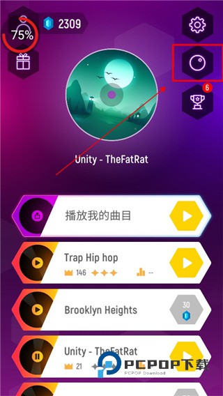 1、在本站下载音跃球球小游戏,任意点击一首歌曲进入游戏;
