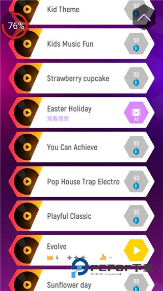 4、所有音乐关卡全部免费,随你挑选,带你遨游音乐海洋。