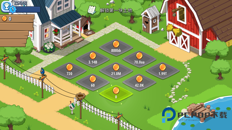 1、线解锁土地,点击0金币解锁的土地。