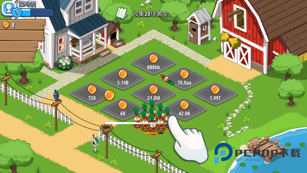 3、通过滑动来收集作物所产出的金币。