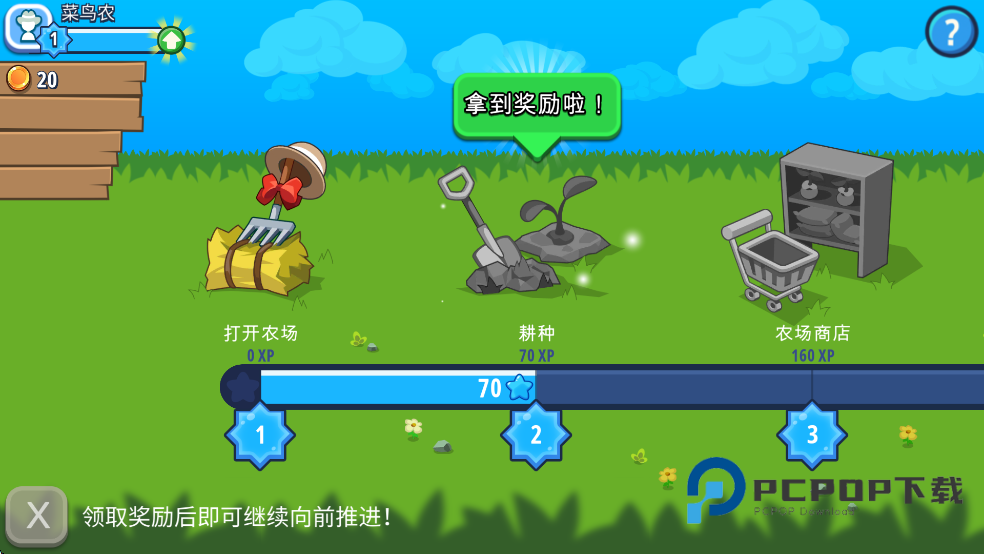 4、等级到达二级,解锁“耕种”。