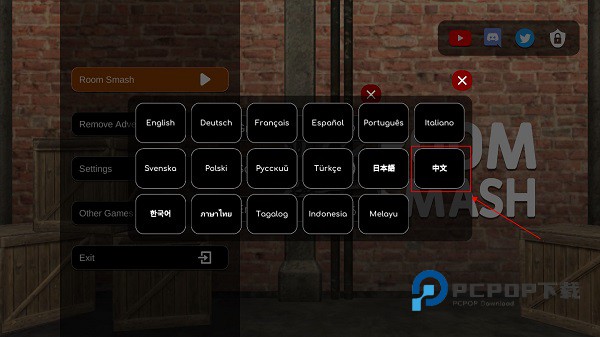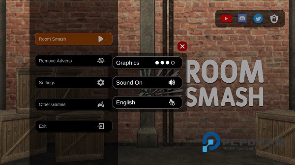1、下载房间毁灭模拟器游戏,安装并启动,进入游戏后,点击“Settings”