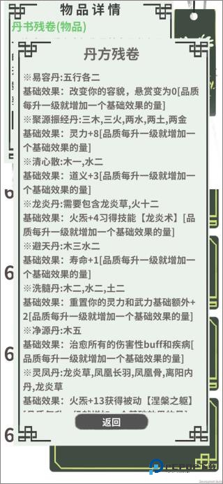 学会炼丹术时获得所有丹方残卷【等同于可以看到游戏里几乎所有的丹药合成方法】