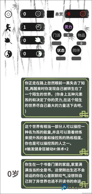 出生即坠入魔道,每年+1灵力+1体术-2道义值