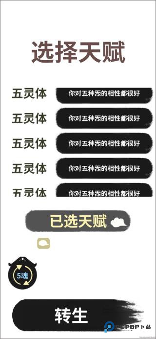 特殊天赋,每次天赋刷新有概率碰到,当同时刷新出五个灵体会使这五个灵体都变成五灵体,初始全属性炁+7,专属选择事件炁+6