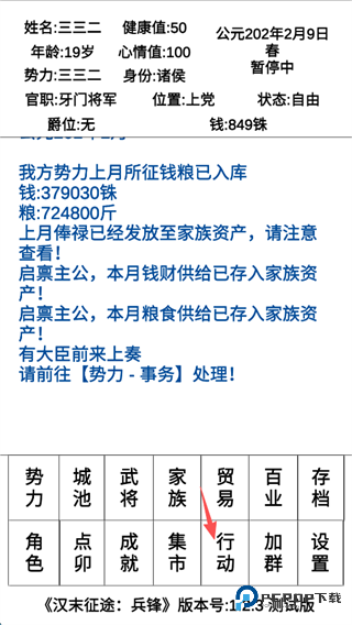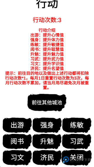 10、行动可以帮助角色提升相应的属性值,帮助角色变得更加强大,以便在乱世之中有自保之力。