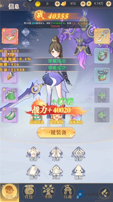 4、装备可以进行强化,以此提升战斗力