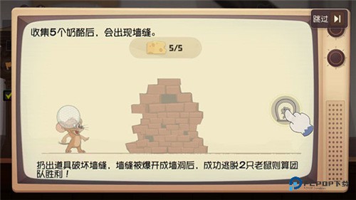 核心目标:在地图中收集五个奶酪后,地图中会随机出现一面墙洞,摧毁这个墙洞即可完成鼠方的胜利目标。