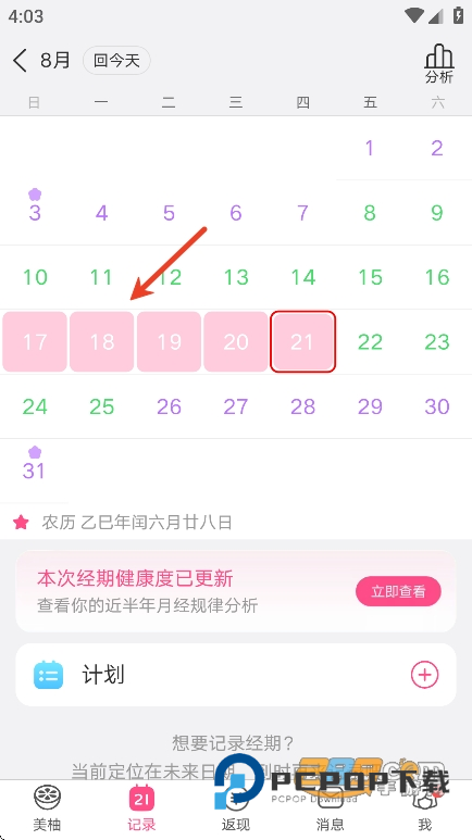 然后美柚会预测之后每个月的经期到达时间,例如预测下个月17号