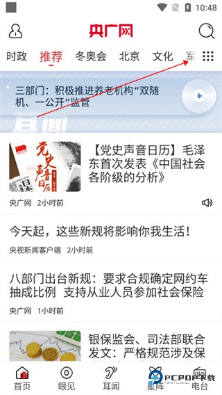 3、进入央广网app之后,头部同样可以自由切换板块