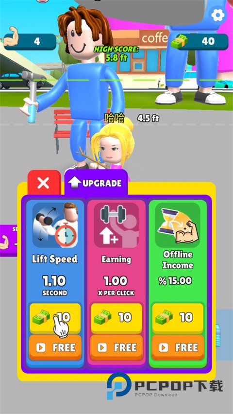 你准备好通过举重成为巨人了吗?本次小编给大家带来的是肌肉甜心官方版,英文名叫Lifting HERO,这是一款非常好玩3D点击手游,游戏玩法非常的简单,通过不断的点击即可,从小重量开始,卖掉你获得的肌肉,购买新物品并举起更多重量,同时也可以将力量转换成钞票,可以解锁哑铃、飞机、火箭、飞碟、陨石等各种道具,不同的道具加成不同,越大的道具加成越多。在肌肉甜心游戏中玩家也可以解锁的皮肤、帽子等,让视觉效果看上去更棒,此外,在游戏中玩家也可以和对手进行pk,在倒计时时间内玩家体型比对手大就可以获得游戏的胜利,同时还可以获得相对应的奖励,喜欢的玩家还在等什么不妨下载体验一下试试看吧!