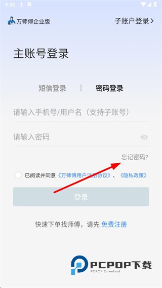 1、在万师傅欢迎页面,点击立即登录按钮,进入主账号登录页面。