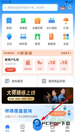1、在万师傅app首页点击底部的按钮,进入下单服务类目选择页面。