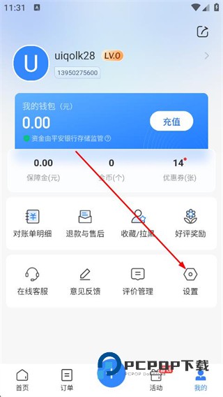 2、在我的页面中,找到并点击设置选项。