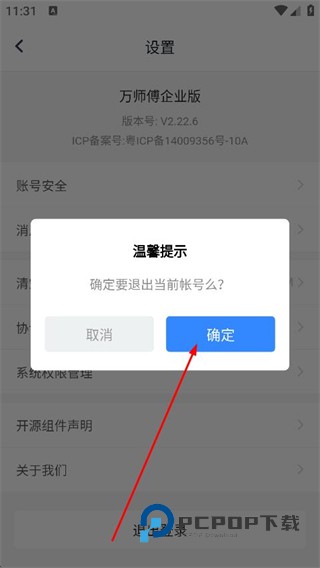 4、在弹出的窗口中,点击确定,即可退出当前登录的账号。