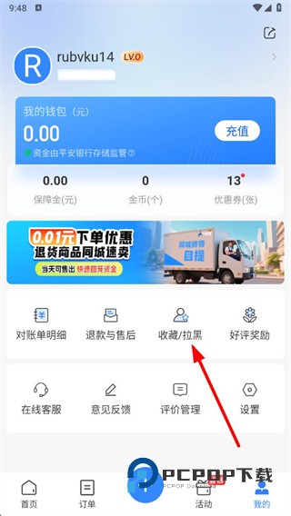 2、在个人页面中,点击收藏拉黑选项。