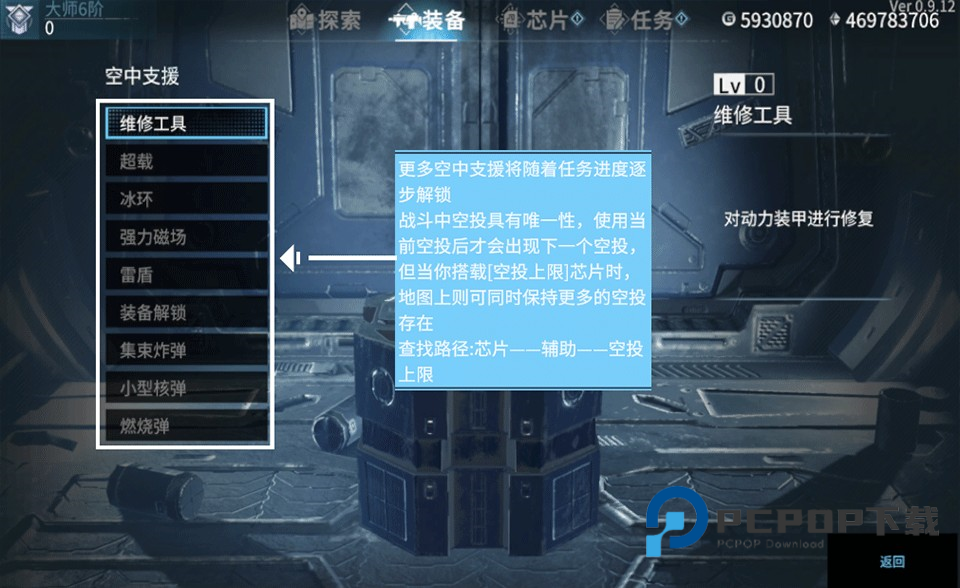 更多空中支援将随着任务进度逐步解锁战斗中空投具有唯一性,使用当前空投后才会出现下一个空投:但当你搭载[空投上限]芯片时,地图上则可同时保持更多的空投存在查找路径:芯片--辅助--空投上限