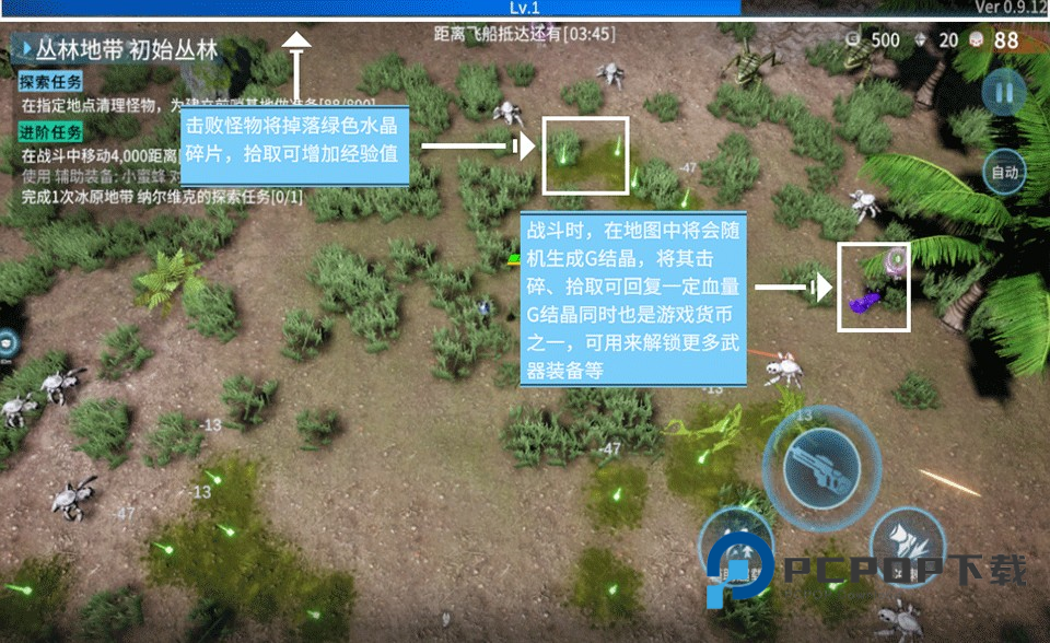 战斗时,在地图中将会随机生成G结晶,将其击碎、拾取可回复一定血量G结晶同时也是游戏货币之一,i可用来解锁更多武器装备等