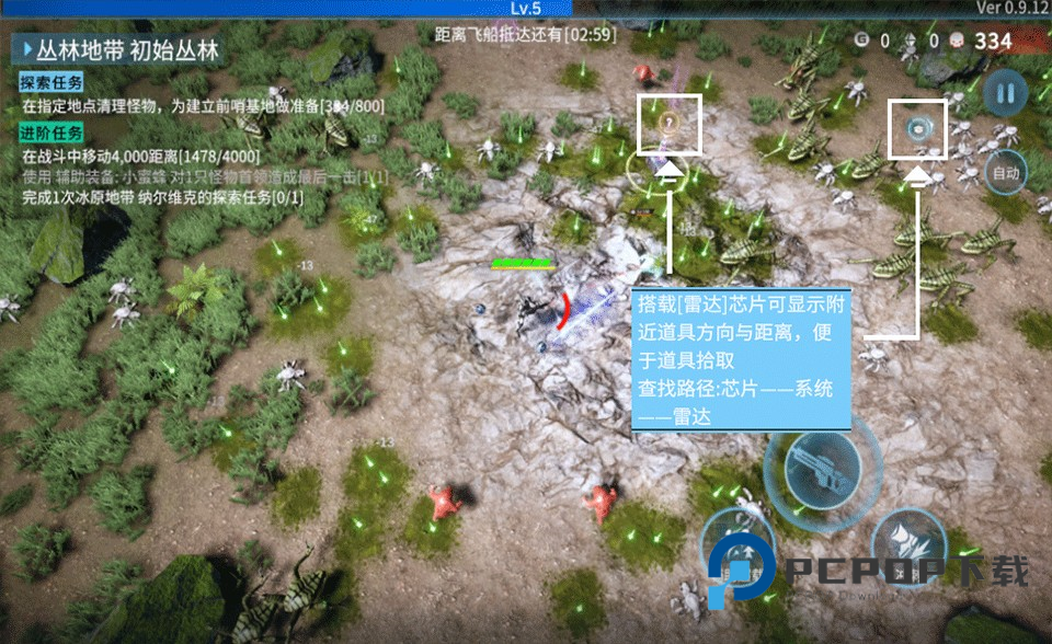 搭载[雷达]芯片可显示附近道具方向与距离,便于道具拾取