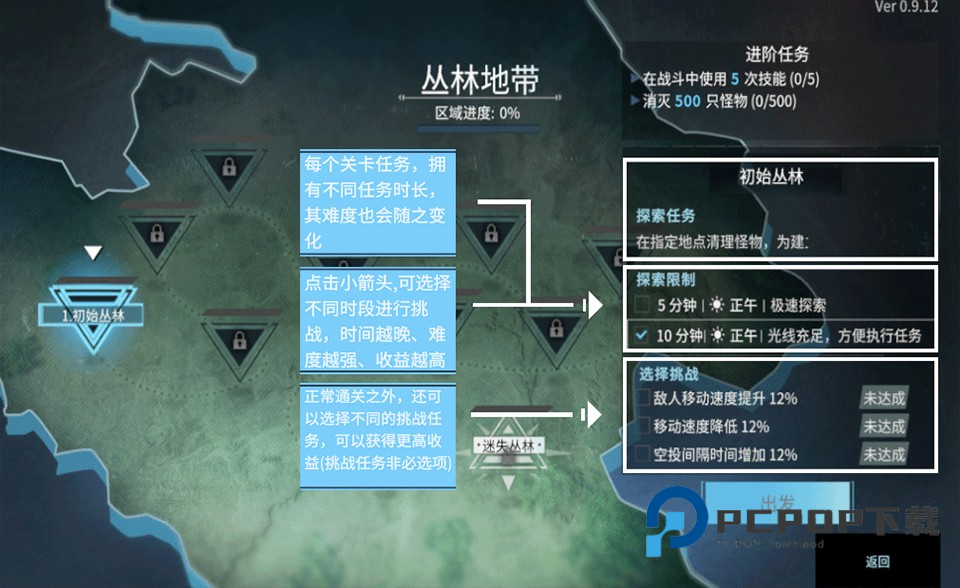 每个关卡任务,拥有不同任务时长,其难度也会随之变化