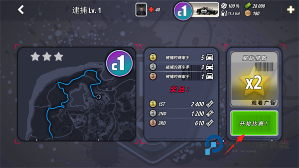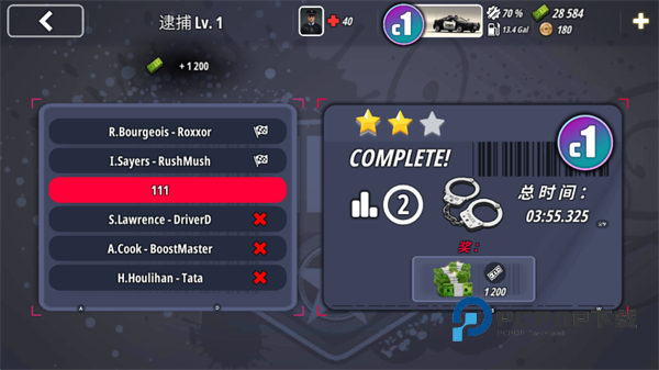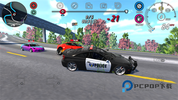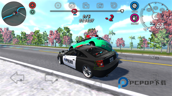 9、玩家需要驾驶警车不断的碰撞罪犯的车辆,选哟注意的是,屏幕右上角的车辆损伤以及油量,记得修复并添加到满值。