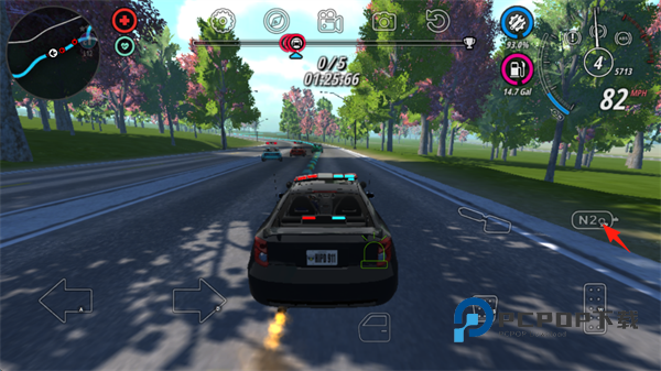 11、当与罪犯距离过远,可以点击屏幕右侧的“N2o”,进行氮气加速。