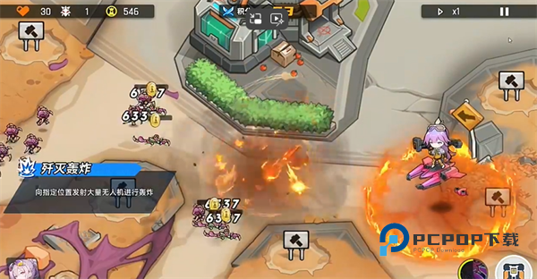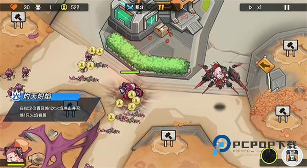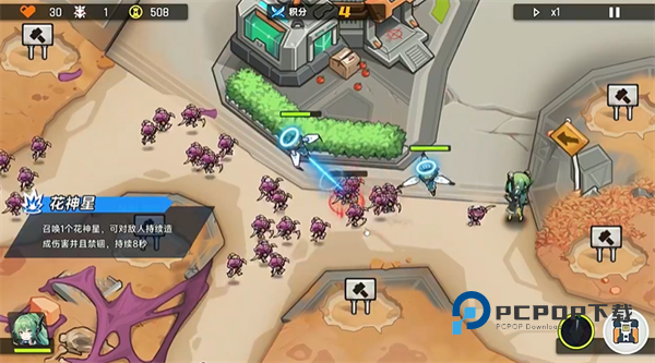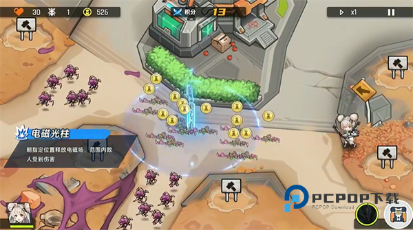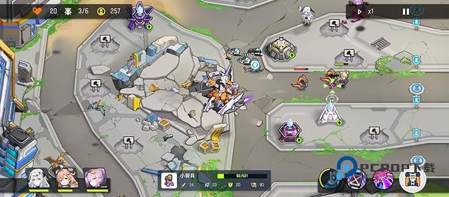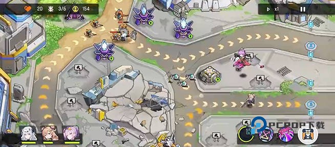 1、在地图上放置不同的角色来阻挡敌人的攻击。通过合理的布局和战术击败敌人,保护基地。