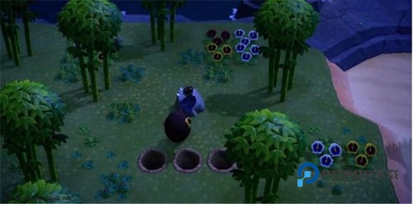 3、杂草捡取完之后,我们要在敲击石头所占的位置后边挖3个大坑,因为我们敲击石头会有后坐力,这样避免过长时间无法获得矿石。