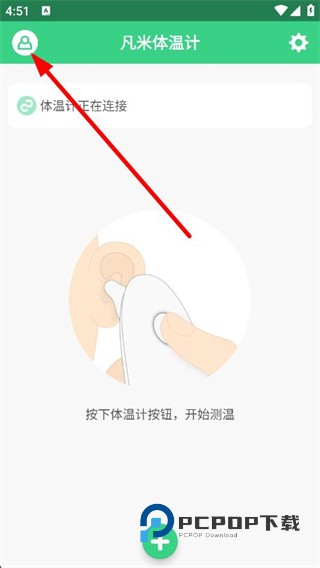 1、打开凡米体温计App,点击页面左上角的用户图标。