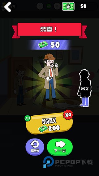 4、那么本关也算是通过了,并可以获得钞票奖励。