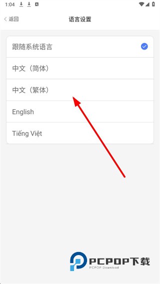 4、进入语言设置页面后,选择所需语言,即可完成app语言的修改。