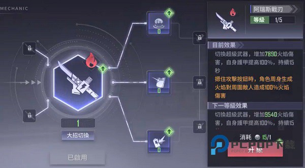 火属性。 自身护甲提升100%,持续15秒,需要长按攻击键。
