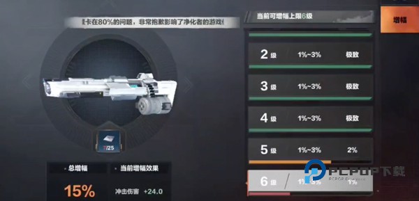 比如在强化主武器过程中,只增幅到30%,那剩下的70%需要再次增幅,直到百分之百。 武器有耐久度,但可无限维修。
