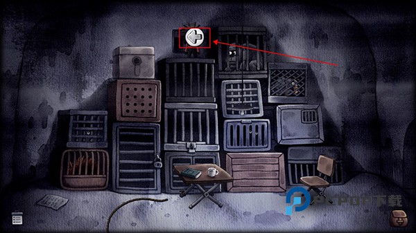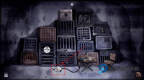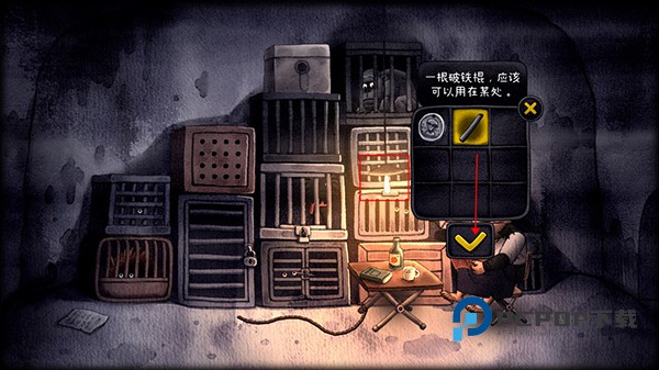 5、然后点击放大镜回到外面的视角,点击灯,使用铁管将灯敲灭,灯灭后看守人就会离开。