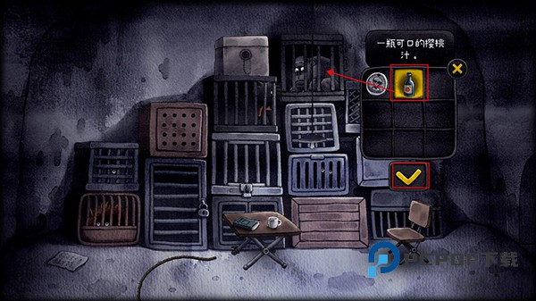 7、然后控制人物,回到第二层,将桌子上的樱桃汁拿下。
