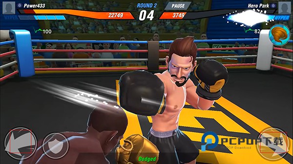 拳击之星手游的玩法比较简单,操作易上手,玩家通过轮盘控制人物移动,按键控制人物闪避,成功闪避还能进行反击,玩家在熟练操作之后还可以释放刺拳、勾拳、上勾拳等连贯招式,轻松击败对手。