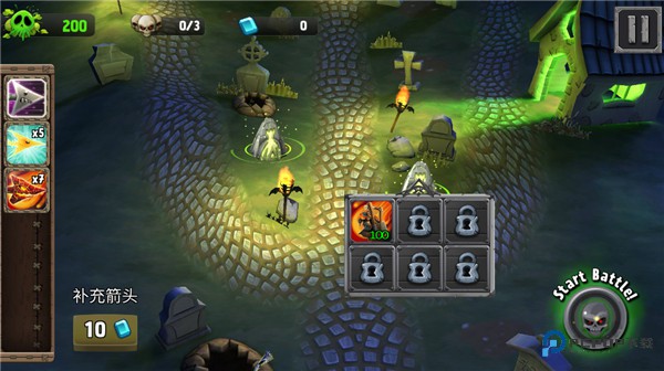 5、进入游戏我们首先选择其中的一个位置设置你的防御塔,并点击Start Battle确认;