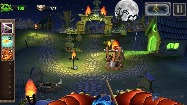 6、之后游戏中会出现骷髅,按住屏幕移动瞄准骷髅放手即可发射,点击左边的弓箭还可以切换其他的弓箭;