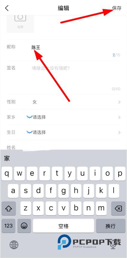 4、输入新昵称后,点击保存按钮,完成昵称修改。
