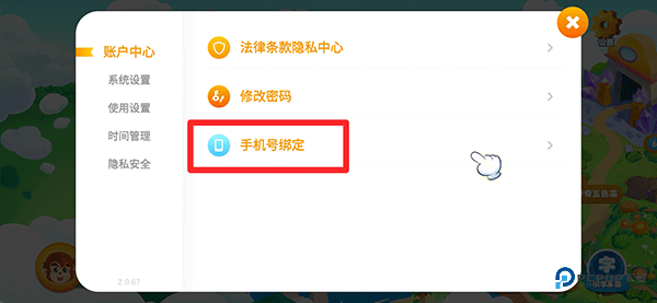3、然后在账户中心内点击手机号绑定