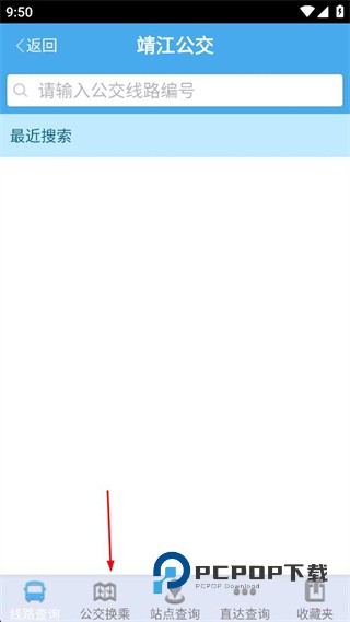 3、在公交线路相关页面底部,找到并点击公交换乘选项,进入换乘查询页面。