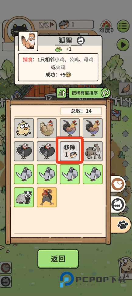 3、选择一个动物点击移除,同样的也是消耗1个罐头。