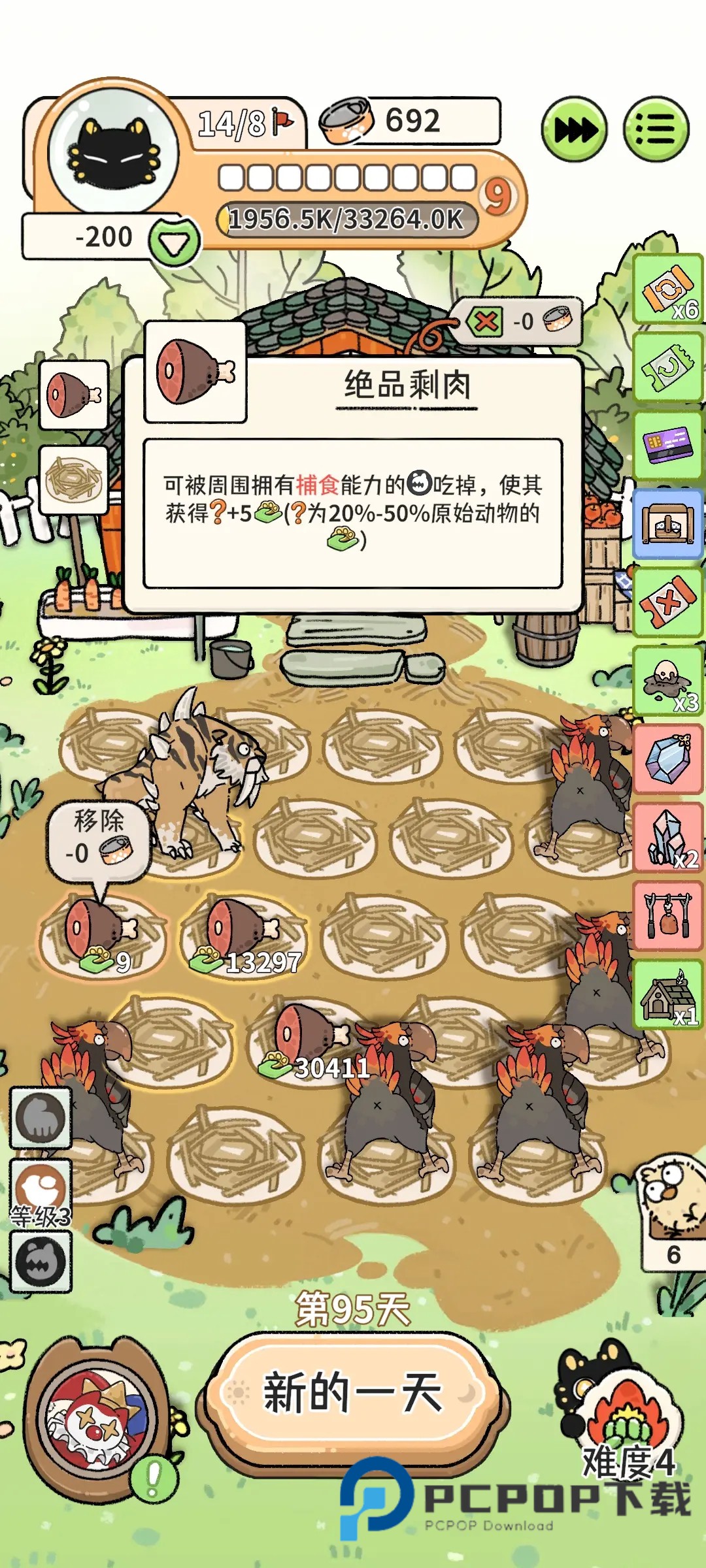 1、在动物分布页面,点击动物再点击移除,花费1罐头卖掉动物。