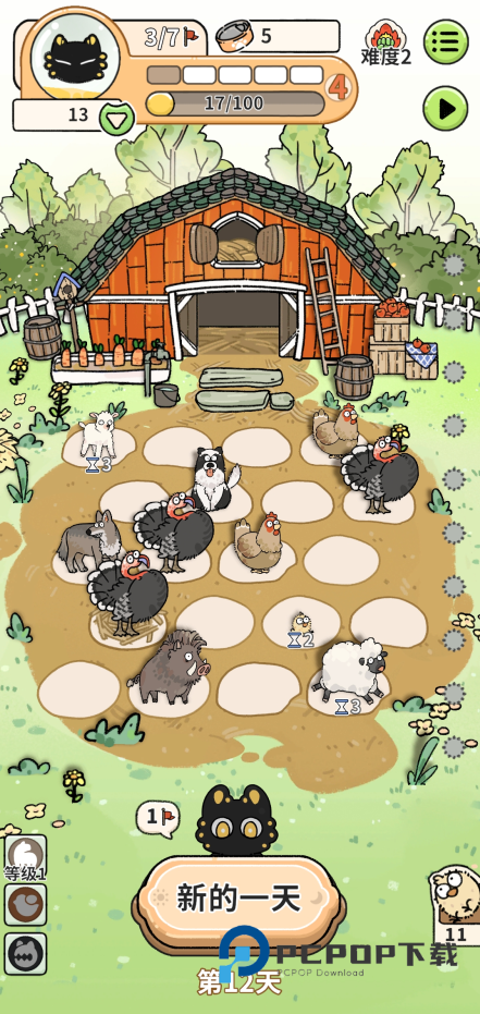 猫神牧场手机版是一款休闲策略肉鸽卡牌构筑游戏,由steam同名游戏移植而来。玩家将成为牧场管理员,通过选择和饲养不同的动物赚取收益,用来供奉猫猫神,每过一天都能在随机三个动物里选择一个。每只动物都拥有独特能力,动物之间还存在生态关系,会触发各种有趣的连锁反应,比如公鸡母鸡相邻有几率会生蛋、狐狸会捕食附近的鸡、牧羊犬会保护周围的羊等等。
