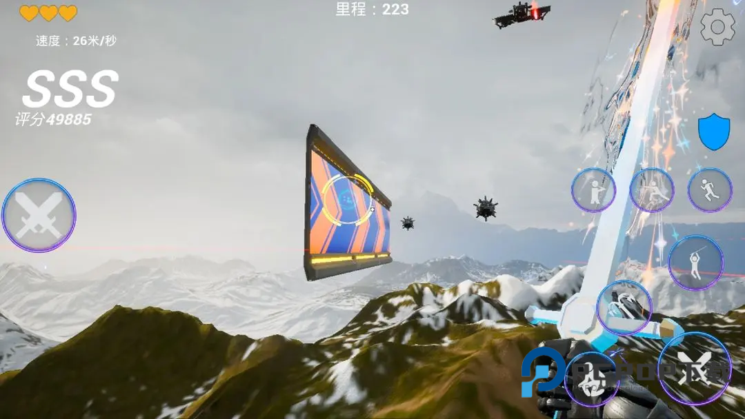 1、游戏拥有炫酷的武器,屏幕左侧控制角色的奔跑移动,屏幕右侧控制武器检视,攻击,跳跃,滑铲,钩索等等操作。